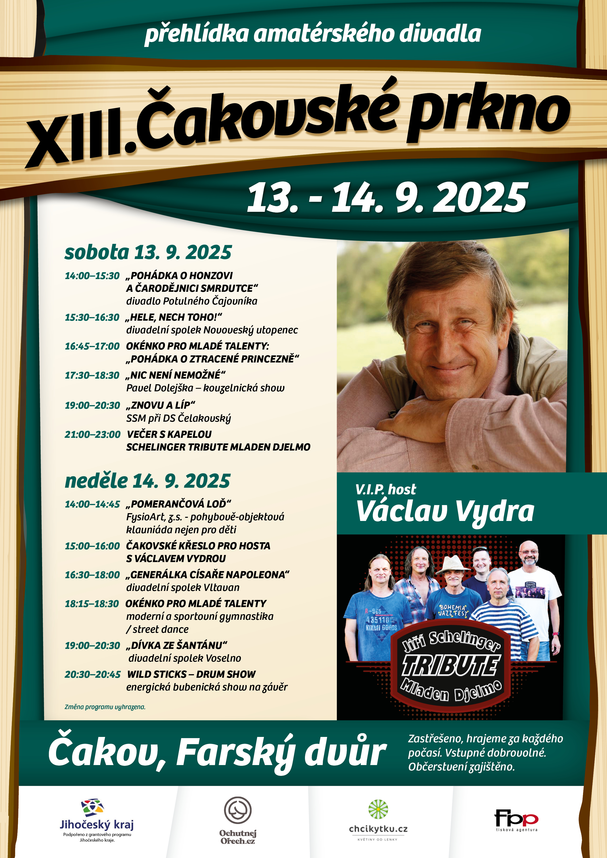 Ve dnech 13 a 14. září se na Farském dvoře v Čakově bude konat přehlídka amatérského divadla a hudby Čakovské prkno.