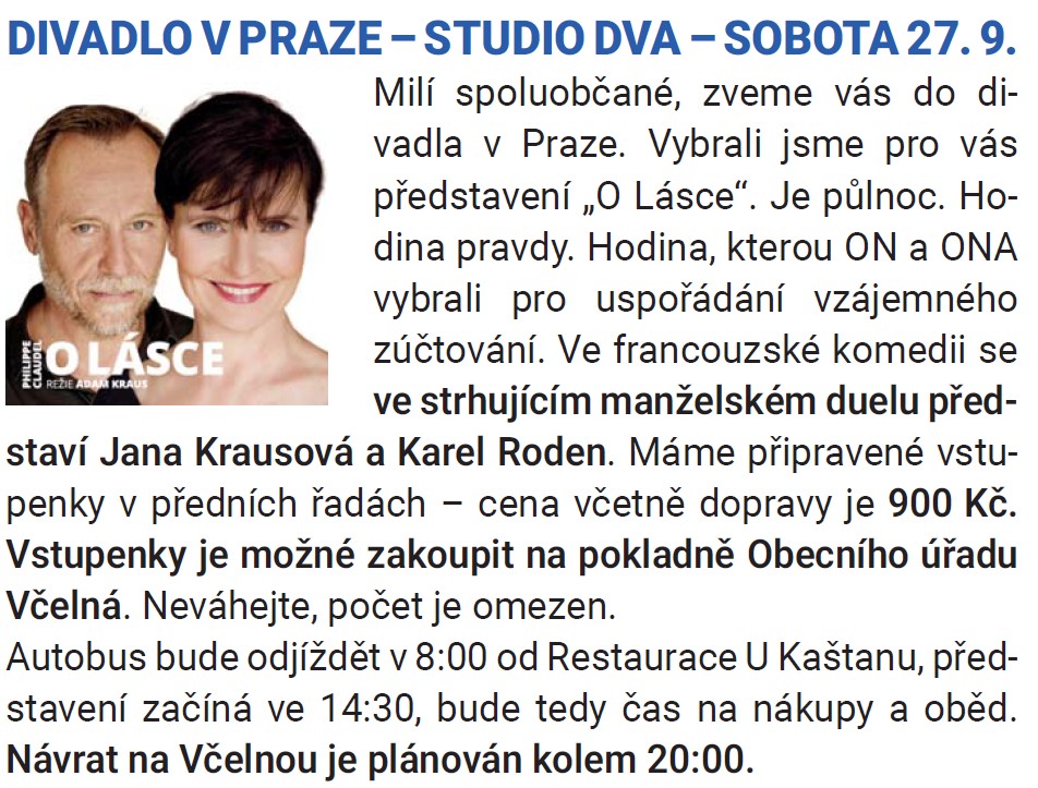 Sobota 27.9. odjezd 8:00, cena 900 Kč včetně dopravy